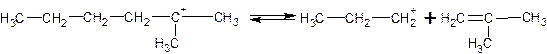 4. Крекинг карбокатиона по β – связи с образованием олефина и меньшего карбокатиона.