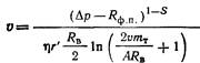 При выводе уравнения (12.85) принято, что расход жидкости через слой осадка постоянен, а сопротивление частиц осадка потоку жидкости имеет одну точку опоры, т. е. принято, что удельное сопротивление осадка не зависит от изменения скорости и давления в процессе его образования. Зависимость удельного сопротивления от давления весьма сложна и определяется многими микрофакторами. В связи с этим точное ее математическое описание затруднительно. На практике чаще всего используют эмпирическое уравнение, предложенное Руттом и Карманом:
