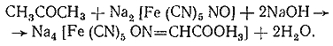 2. Реакция с нитропруссидом натрия. Ацетон с нитропруссидом натрия в щелочной среде дает интенсивно-красную окраску. При подкислении уксусной кислотой окраска переходит в красно-фиолетовую: