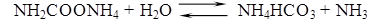 На первом стадии карбонизации большая часть диоксида углерода связывается в карбомат аммония: