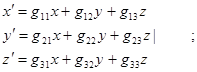 Тогда для последовательных преобразований мы будем иметь причем это число будет уже удовлетворительным представителем группы. В более общем случае можно было бы рассматривать три координаты X,Y,Z точки на единичной сфере, и смотреть, что с ними происходит при различных преобразованиях группы. Если операция R группы переводит точку М (X,Y,Z) в положение M¢ (X¢,Y¢,Z¢), то это преобразование координат может быть записано:
