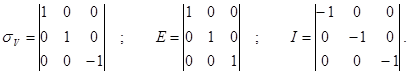 Так, в частности, операция отражения в плоскости sz, операция идентичности Е и инверсии I в начале координат будут иметь вид: