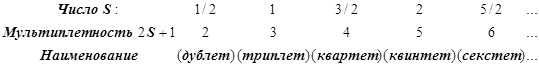 По величине суммарного спина S вводится мультиплетность, равная 2S+1, и термы