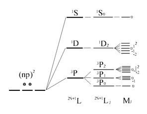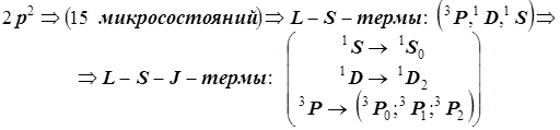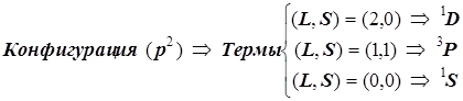 В итоге термы, возникающие в основной конфигурации атома углерода, представлены следующим образом: