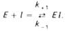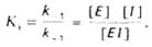Образовавшийся комплекс, называемый фермент-ингибиторным комплексом ЕI, в отличие от фермент-субстратного комплекса ES не распадается с образованием продуктов реакции. Константу диссоциации комплекса EI, или ингибиторную константу Кi, можно, следуя теории Михаэлиса–Ментен, определить как отношение констант обратной и прямой реакций: