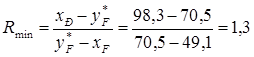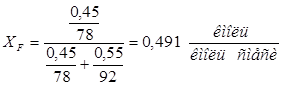 – концентрация легколетучего компонента в паре, находящегося в равновесии с исходной смесью XF (графика У–X). = 70,5 %