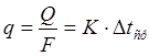 Это уравнение решается графически, задаваясь значением q. В качестве первого приближения принимается ориентировочное значение удельной тепловой нагрузки: