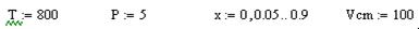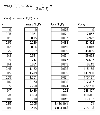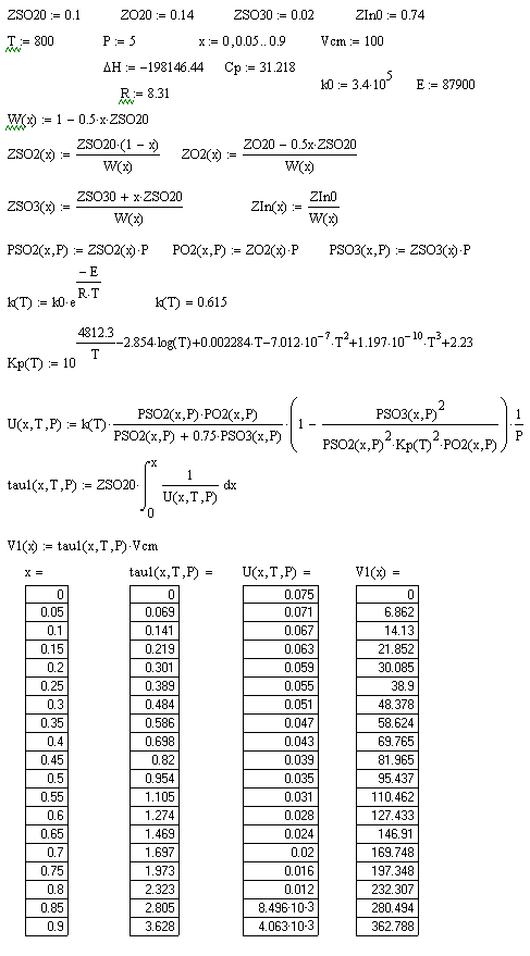 Производительность реакторов изменяется от 0 до 9 м3/с с шагом 0,5 при соответственном изменении степени превращения SO2 от 0 до 0,9 с шагом 0,05.