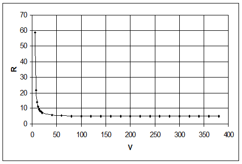 F = 10кмоль/час. При этих значениях с помощью программы Eсxel численно просчитаем, по формуле (2.44), зависимость величины рецикла от объема. Результаты представлены в таблице 2.2.