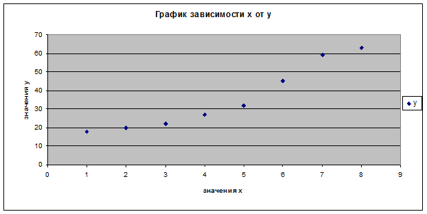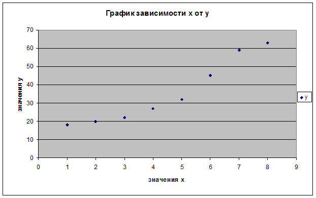Согласно построенному графику, между значениями x и y устанавливается линейная зависимость, описываемая уравнением : у = а-аx.