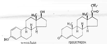 Эсрогены контролируют циклические изменения в матке, в то время как прогестогены (гестогены) способствуют наступлению и сохранению беременности после зачатия. Эстрадиол, главный эстроген выделяется яичниками во время развития и выхода яйцеклетки, он подготавливает слизистую матки для внедрения оплодотворенного яйца. Если зачатие не наступает, то выделение эстрадиола ослабевает и слизистая оболочка матки отторгается (ментсруация). Развитие и выход другой яйцеклетки сопровождается дальнейшим выделением эстрадиола. Если оплодотворение наступает, то в желтом теле яичника, а позднее и в плаценте образуется и сохраняет беременность главный прогестоген – прогестерон. Многие соединения, испробованные и используемые как оральные контрацептивы, имеют структуру, близкую к экстрадиолу и прогестерону.