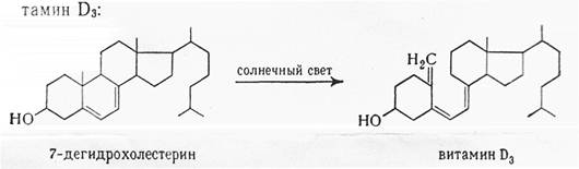 Известно около десяти витаминов D, незначительно различающихся между собой по строению. Все они относятся к группе стероидов – сложных органических соединений с конденсированными кольцами. Все витамины группы D участвуют в управлении процессом отложения кальция и фосфора в растущих костях человека. При отсутствии витаминов D этот процесс нарушается, в результате чего кости становятся мягкими и деформируются. Такое явление называется рахитом и свойственно только детскому возрасту.