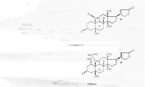Сердечные гликозиды представляют собой гликозилированные по гидроксилу в положении 3 ненасыщенные стероидные лактоны их агликоны содержат А/В и С/Д цис-сочлененные стероидные системы и пяти – (карденолиды) или шестичленные (буфадиенолиды) лактонные кольца, причем растительные буфадиенолиды структурно близки агликонам буфотоксинов. В отличиии от своих агликонов, которые обычно не намного менее токсичны, сердечные гликозиды концентрируются в сердечной мышце и их содержание в ней в 10-40 раз выше, чем в других тканях организма.