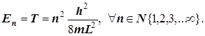 L=nl/2, " nÎN {1, 2, 3, . ¥}; U(x) =0, E=T=p2/2m, " xÎ [0, L]