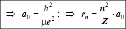 В атомной системе единиц формулы для уровней энергии и “радиусов” движения в водородоподобных атомах (одноэлектронных ионах) выглядят особенно просто: