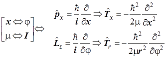 Рабочие формулы: Формула оператора момента импульса в плоском вращении подобна формуле оператора импульса в поступательном движении. Необходимы замены величин xÛj и m=I: