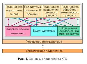 Проблему сырья нельзя решать в отрыве от использования других видов ресурсов, обеспечивающих нормальное функционирование химико-технологических систем (ХТС). Это объясняется взаимосвязанностью и взаимообусловленностью протекающих в ХТС процессов, вследствие чего изменение одного элемента системы приводит к соответствующим изменениям других. На рис. 4 показаны основные подсистемы ХТС, то есть совокупность процессов и аппаратов, объединенных единой технологической целью. Сырье последовательно проходит каждый элемент (процесс, аппарат) системы, постепенно превращаясь в товарный продукт. Естественно, что от уровня технологичности сырья будут зависеть затраты на всех стадиях его обработки.