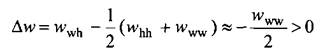 Полезно рассмотреть смешение воды и гидрофобных молекул, например углеводородов. Взаимодействие вода-вода отрицательно и существенно по величине, тогда как взаимодействия вода-углеводород и углеводород-углеводород по сравнению с ww слабые и их можно считать нулевыми. Тогда эффективное парное взаимодействие записывается следующим образом: