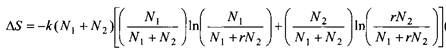 Тогда выражение для энтропии смешения можно записать в обычном виде: