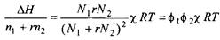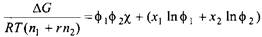Энергия смешения имеет ту же форму, что и для смеси низкомолекулярных жидкостей); запишем ее в виде