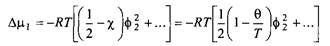 В науке о полимерах широко распространена концепция и-температуры и представление о хороших и плохих растворителях. Чтобы ввести эти понятия, вернемся к уравнению. Избыточный химический потенциал для малых объемных долей растворенного вещества можно разложить в ряд: