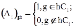 Назовем i-ой матрицей смежности Ai матрицу порядка, равного порядку группы G, строки и столбцы которой занумерованы элементами группы G, причем элементы матрицы Ai с номером (g, h), g, hÎG определяются как
