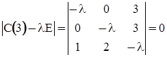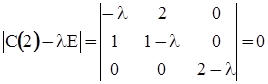 Заметим, что выше уже записаны уравнения для нахождения собственных векторов матриц C(i), однако в этих уравнениях фигурируют собственные значения этих матриц, которые необходимо найти. Для матрицы С(1) получаем трехкратное собственное значение, равное единице, поэтому находим собственные значения матриц С(2) и С(3). Запишем для них вековые уравнения: