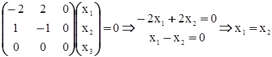 4. Находим теперь собственные векторы для рассматриваемых матриц. Для матрицы С(1) – это произвольный вектор x1(1)= (x1, x2, x3). Для собственного значения l=2 матрицы С(2) имеем
