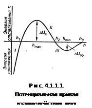 При h = h1, h2, h3 U (h) = 0, т. е. при этих расстояниях между частицами силы притяжения уравновешиваются силами отталкивания.
