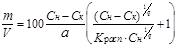 Для достижения оптимального разделения существенно подобрать необходимое количество ионита. Если известна константа распределения Красп и емкость данного ионита Q, то величина отношения массы ионита (m, г) к объему анализируемого раствора (V, см3), которая обеспечит уменьшение концентрации иона Меn+ в растворе от начальной величины Сн до требуемого значения Ск,