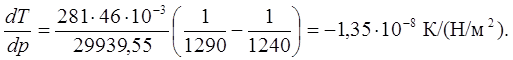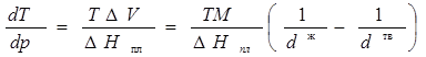 3. Вычислим dT/dp в тройной точке из уравнения: