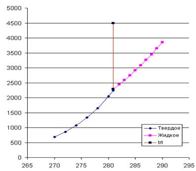 Рис. 2. Температурная зависимость давлений насыщенного пара для твердого и жидкого вещества