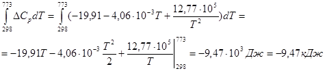 4)Определение стандартного теплового эффекта при Т=500К
