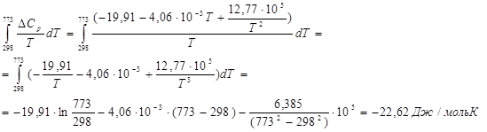 Сначала вычисляем стандартный тепловой эффект при 298 К.