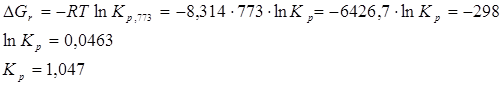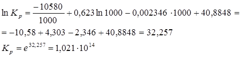3) Константа равновесия при повышении температуры увеличивается. Принимаем Т=1000К и повторяем расчет. Функция экспоненты в степени х является возрастающей, значит чем больше значение логарифма функции, тем больше сама функция.