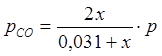 Равновесные парциальные давления определим по закону Дальтона: