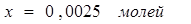 С учетом того, что углерода расходуется в 2 раза больше, чем кислорода, то количество прореагировавшего углерода составит 0,005 молей.