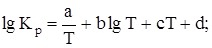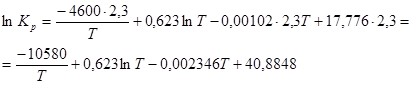 Зависимость константы равновесия реакции от температуры (табл. 9) выражается уравнением