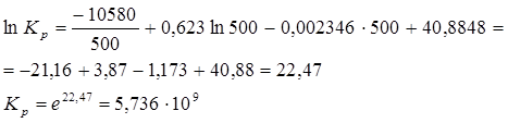 1)Определение константы равновесия при 500 К.