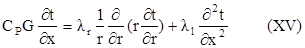 где G - массовая скорость газа; lr и ll - коэффициенты теплопроводности газа по главным осям системы координат перепндикулярно и вдоль оси движения среды. Таким образом , для зернистого слоя с движущейся газовой (жидкой) фазой, как и для неподвижной среды, коэффициент теплопроводности определяет интенсивность выравнивания температур в некоторой квазигомогенной среде.