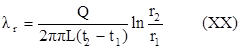 где Q - общее количество теплоты, передаваемое через слой; L - высота слоя; t1 и t2 - температуры слоя на расстояниях от оси r1 r2.