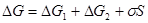 Определение границы поверхностного слоя задача очень сложная, поэтому Гиббсом предложено относить все изменения термодинамических параметров слоя разделяющей поверхности, не имеющей объема и толщины. При таком рассмотрении поверхность будет обладать избыточными термодинамическими параметрами, непосредственно отражающими проявление поверхностной энергии. В соответствии метода Гиббса позиция 1 на рис. 2.1.1.1 – энергия системы равна сумме энергий Гиббса объемных фаз DG1 и