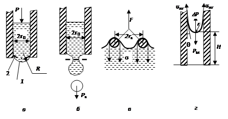 В капилляре за счет смачивания образуется вогнутый мениск с радиусом кривизны r, поверхностное натяжение sжг вызывает капиллярное давление Dр. Оно уравновешивается весом Рн столба жидкости высотой Н: