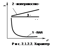 Если вещество поверхностно активно, то с увеличением концентрации изотерма резко уменьшается (кривая 1 рис. 2.1.2.2).