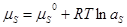 =0. С учётом этого, выражение для химического потенциала компонента s в растворе, содержащем m компонентов, запишется так: