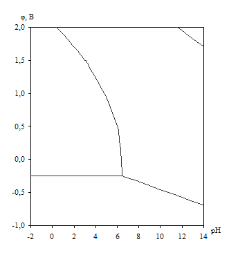 На диаграмме рН – потенциал системы Ni – H2O (рис. 1.6.) также можно выделить 4 области преобладания различных фаз: