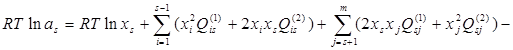В соответствии с ОТРР, активности компонентов сплавов можно рассчитать по формуле: