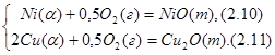 Поскольку химическое сродство никеля к кислороду выше, чем меди, то можно предположить, что почти при любом составе сплава Сu – Ni в первую очередь будет окисляться именно никель из сплава, то есть будет реализовываться равновесие сплав – NiO, а не сплав – Cu2O.