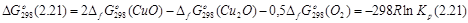 Cu2O(т)+0,5O2(г)=2CuO(т) (2.21) и
