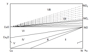 Рис. 2.1. Диаграмма состояния Cu – Ni – O при 25˚С.